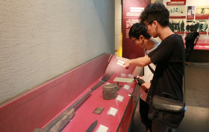 党员学生在纪念馆文物前驻足观看