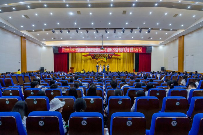本网讯 6月8日晚,我校2018年志愿服务表彰大会暨会刊《心泉》第十三期发布会在鹅城会议厅举行。校党委副书记赵日兴出席活动并讲话,校团委相关负责人,惠州市志愿服务队伍代表,校青年志愿者联合会全体成员,各二级学院团总支书记、青年志愿者分会学生代表及获奖学生代表参加了活动。