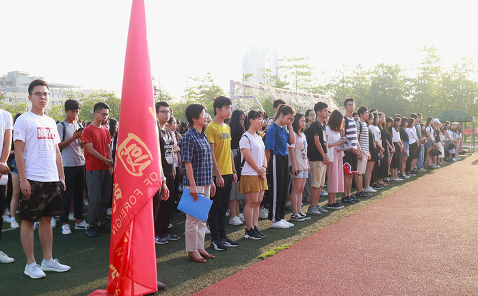 本网讯 为进一步增强“四个意识”,坚定“四个自信”,6月11日早上,外国语学院在学校田径场举行了庄严神圣的升旗仪式。全体师生在激昂的国歌声中,接受了爱国主义精神的洗礼。