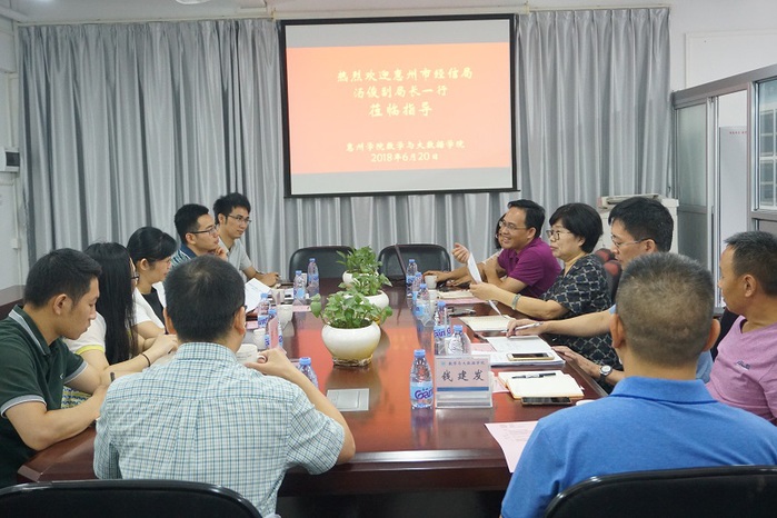本网讯 6月20日上午,惠州市经信局副局长汤俊率队到访我校数学与大数据学院,就大数据与人工智能发展等开展专题调研。该院领导班子成员、各系(部、中心)主任及教师代表参加了调研座谈会。