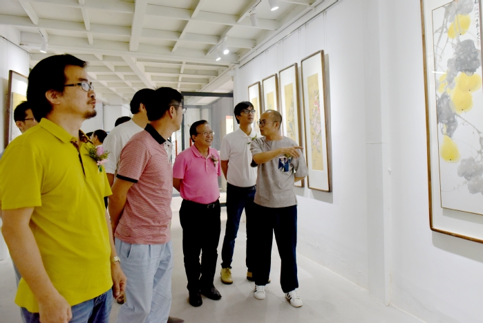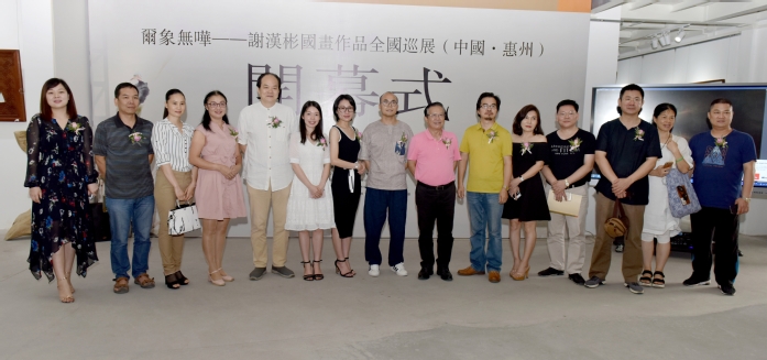 本网讯 6月21日下午,“尔象无哗——谢汉彬国画作品展”开幕式在我校惠大美术馆举行。原清远市委副书记、书法家邓光荣,惠州画院院长余立新,深圳艺品阁书画院院长庄国平,冠和博物馆经理韦芳,中国国家画院范杨工作室著名画家赵杰老师,我校美术与设计学院院长杨中华、党总支书记许秋娟,惠州画界相关代表、美术与设计学院师生代表200余人参加了开幕式。