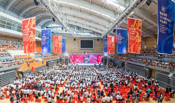 本网讯 6月29日上午,我校2018届毕业典礼在金山湖体育馆隆重举行。全体在校校领导、机关教辅部门负责人、各二级学院党政负责人、教师代表、全体辅导员、2018届全体毕业生、校友代表以及毕业生家长代表等共同参加了典礼。