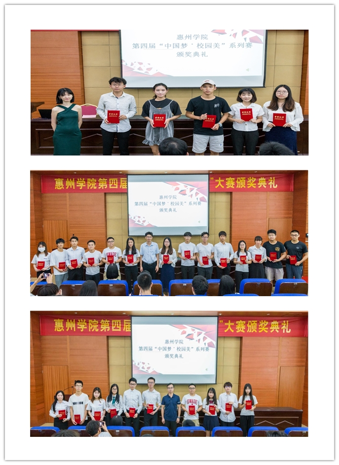 至此,第四届“中国梦•校园美”大赛圆满结束!据了解,本次比赛自2018年4月启动,包括微电影大赛、摄影大赛、“声音新力量”播音大赛等三项具体赛事,旨在让照片定格瞬间、视频记录岁月、声音讲述故事,让惠院学子发现和记录校园的美, 让每个惠院学子心里都有不一样的世界。