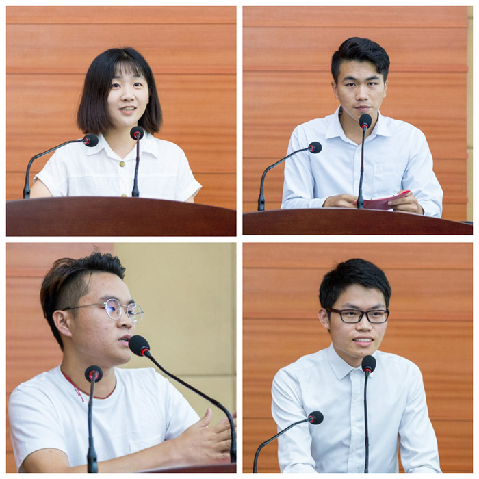 参赛代表进行了发言。微电影大赛一等奖作品《小城大爱》的团队副导演陈敏丹同学讲述了团队成员对摄影、摄像的热爱以及记录生活的热忱,对团队成员和指导老师表示由衷的感谢,希望未来能派出更多更好的作品。“我的大学”摄影大赛相机组一等奖《送别》的获奖者徐略标同学向观众阐述了作品的拍摄灵感和意义,表示摄影是一门无言的艺术,但却能传达许多动人的故事,它不需要高超的摄影手法,也不需要如何寻找富有冲击力的摄影视角,只需用心发现身边的故事,并在按下快门前想清楚所要表达的故事、如何表现;手机组一等奖《迷你惠院》的获奖者麦文超同学也认为,摄影是一门综合的艺术,它通过镜头记录点滴生活,表达自己的情感和对世界的思考,由此走向更广阔的空间。“声音新力量”播音大赛一等奖作品《阆苑江湖》的获奖代表吴南锋同学讲述了作品创作过程中的精彩过程,向听众展示了当代大学生的校园生活和大学生对待学习、工作和生活的积极态度。