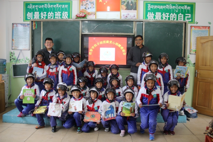 据了解,登木乡中心小学位于高海拔山区,平均海拔在3700米左右,学校至各村落的道路崎岖不平,泥泞路、砂石路以及部分地基沉陷路段随处可见,在这里没有营运公交车,更没有国家标准的校车,学生上下学绝大多数是由父母骑摩托车进行接送,行车安全系数较低。为增加学生上下学出行安全保障,提升孩子们的阅读及动手实践能力,经管学院特地为该校组织捐赠了一批头盔、书籍和手工制作,旨在帮助化解登木乡小学课外书籍和手工小制作不充足的困难。