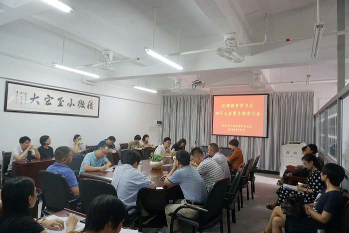 本网讯 9月27日下午,数学与大数据学院在院会议室召开2018年纪律教育学习月动员大会暨专题学习会。会议由院党总支书记金岩主持,全院教职工参加了会议。