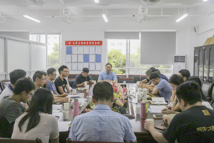 本网讯 10月10日下午,文学与传媒学院青年教师科研能力提升座谈会在旭日大楼407召开。会议由院党总支书记赖常青主持,院党政班子成员、45岁以下青年教师参加了会议。