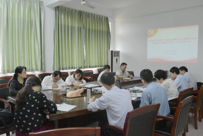 本网讯 为深入学习宣传贯彻全国教育大会精神及新时代全国高等学校本科教育工作会议精神,生命科学学院于10月23日下午在学院会议室召开大学习、大讨论专题研讨会。学院党政领导、各系主任、党总支委员、办公室主任、辅导员参加研讨会。会议由院党总支书记梁红梅主持。