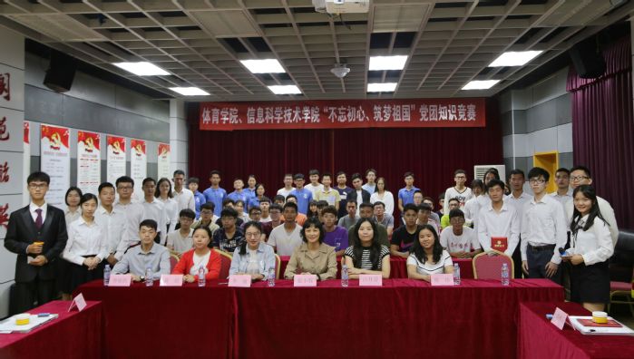 本网讯 10月21日晚,体育学院、信息科学技术学院在金山湖体育馆二楼党员活动室联合举行了党团知识竞赛。两院党总支负责人、辅导员、学生支部书记出席活动,两院党员学生、入党积极分子代表参加了竞赛。