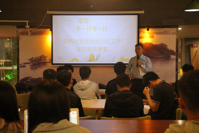 罗晋贤以《干一行专一行》为主题,与师生分享了他的工作经历和创业体会,并对师弟师妹们成长提出了具体的建议。他表示选择第一份工作一定要慎重,要结合自身实际谨慎选择;创业要明确目标,要有平常心,不能急功近利;要“干一行,专一行”,付出努力,坚持到底。他建议同学们在校期间要充分利用良好的学校学习环境,多参加兼职,多吸收社会经验,时刻为创业就业做好准备。互动交流环节,同学们积极踊跃发言提问,罗晋贤一一作了详细解答,现场不时响起热烈的掌声。