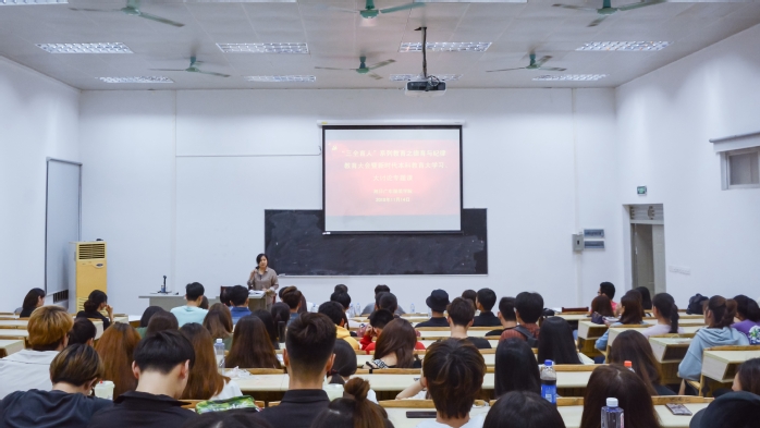 本网讯 11月14日晚,旭日广东服装学院在服装楼101课室举行“三全育人”系列教育之德育与纪律教育大会暨新时代本科教育大学习大讨论会议。旭日广东服装学院党总支书记曾裕林、执行院长刘小红等院领导、辅导员、教务员、表演班各科任老师以及表演专业全体学生参加了大会。