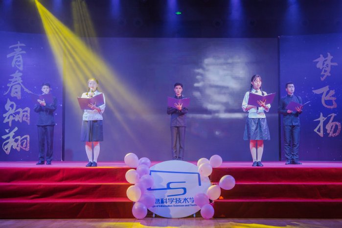 本网讯 灯火斑斓,璀璨夺目。11月24日晚,信息科学技术学院在金山湖体育馆举行了“青春翱翔,梦飞扬”2018迎新晚会。学院领导、校友以及师生代表一千余人观看了演出。