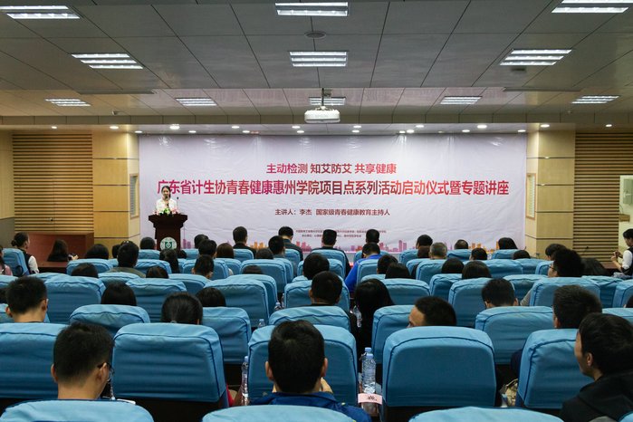 启动仪式后,广东省计生协青春健康惠州学院项目点系列活动专题讲座随即开始,青春健康教育国家级主持人李杰老师应邀担任主讲。李杰老师从时代变化带来信息传播的广泛性作为切入点,指出了在社会转型背景下青少年性健康所面临的严峻挑战,强调婚前性行为、意外怀孕、感染性病及艾滋病已经成为威胁青少年性健康的三大严重问题,而青少年对性的态度(价值观)以及行为能力却更加令人担忧。为应对这些挑战,李杰老师呼吁青年学生在知情选择、负责任的前提下,无论何时都要做健康、安全、负责任的决定。为增强教育效果,李杰老师还现场邀请20名同学进行换水游戏,在此过程中用幽默的语言向同学们传授艾滋病的传播方式、对待艾滋病患者的态度、艾滋病患者应养成的心态、预防艾滋病的方式等关于艾滋病的知识。