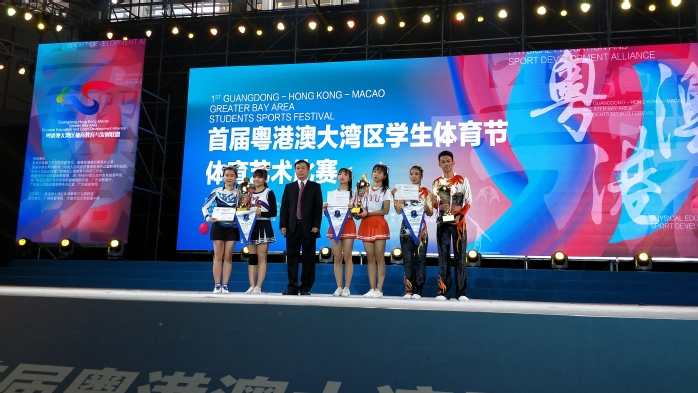 11月24日晚,在广东省教育厅厅长景李虎宣布下,首届“粤港澳大湾区学生体育节”隆重开幕。我校派出健美操、三人篮球共十位队员参加体育节竞赛交流活动。其中,健美操有氧舞蹈获得表演类项目优胜奖。