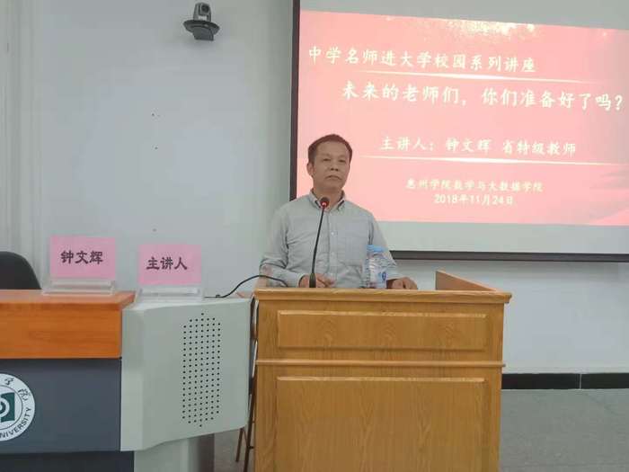 本网讯 11月24日下午,数学与大数据学院特邀惠阳区教育局钟文辉老师为2016级数学与应用数学专业学生作《未来的老师们,你们准备好了吗》专题讲座。本次活动由教务处主办、数学与大数据学院承办。