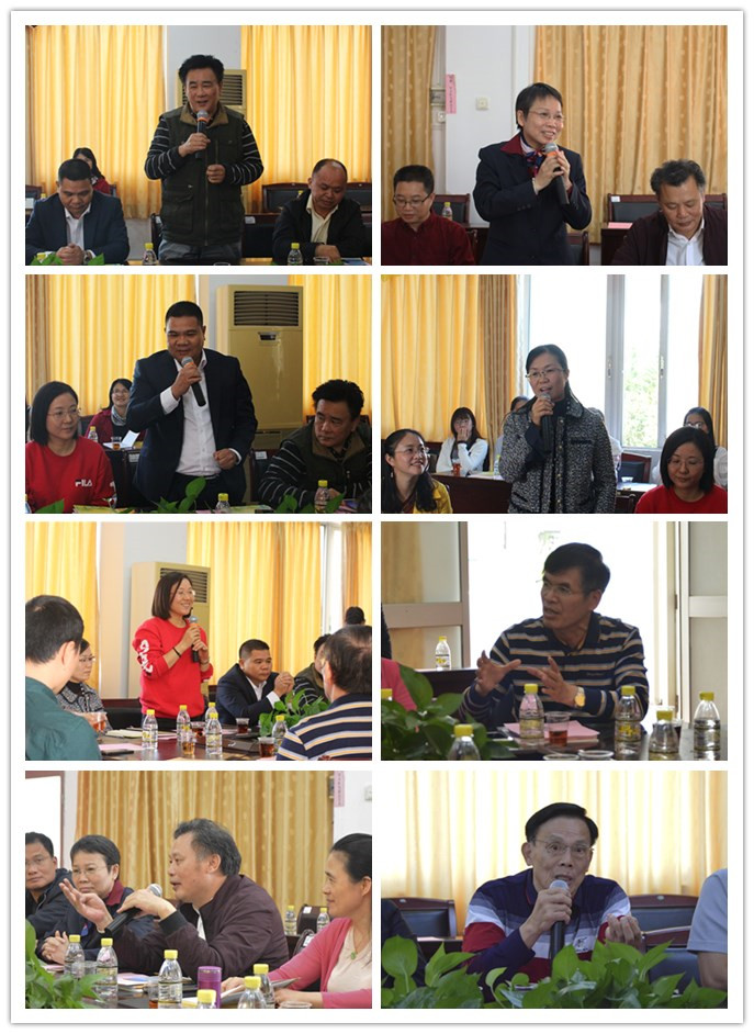 院长曾方本作研讨会主题发言,介绍了学院主要情况,围绕英语(师范)专业办学情况,从该专业的建设举措、成效、推广与应用和学科建设的支撑等方面进行了阐述,重点介绍了“卓越英语教师”培养的实施路线和方法等。与会人员就师范教育的发展和如何培养“卓越英语教师”纷纷展开讨论。学院退休教师林国兴认为,师范生一定要有扎实的专业基础和标准流利的英语口语。惠州市一中校长练伟平校友认为,作为一名英语教师,除应该具备扎实的基本功、具备过硬的教学技能,还需要有爱心、要有深厚的教育情怀,列举了数个受人尊敬的一中老教师为例。同时,他还表示将在协同培养英语师范生方面发挥一中及其附属学校的作用。市教育局继续教育科科长谢茵校友认为,师范生对于教师这一职业要有足够的认知,在打好专业基础的同时,把教书育人作为一种事业来做。吉隆中学校长曹伟良校友则认为,德智体美劳全面发展,以德为先,要严抓学风、抓思想、抓纪律。