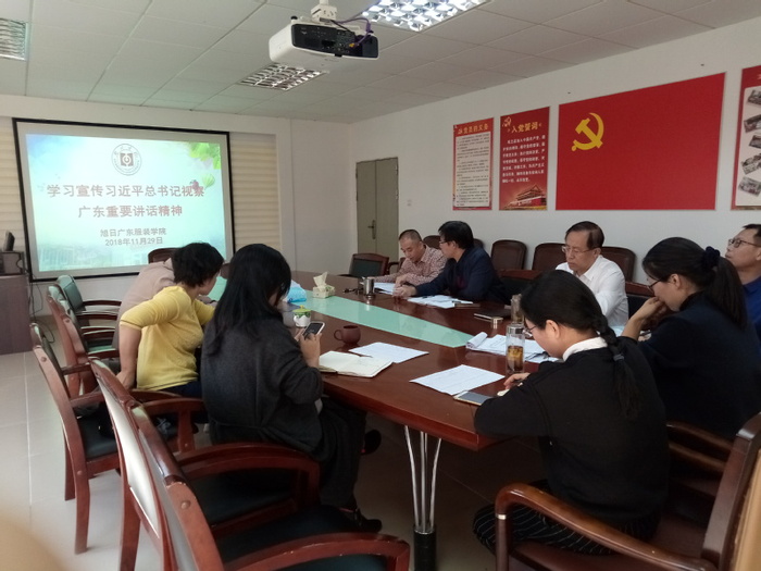 本网讯 11月29日下午,旭日广东服装学院召开学习宣传习近平总书记视察广东重要讲话精神专题学习会。学院领导班子、各支部书记、办公室主任、创新创业主任、辅导员参加了专题学习会。会议由党总支书记曾裕林主持。