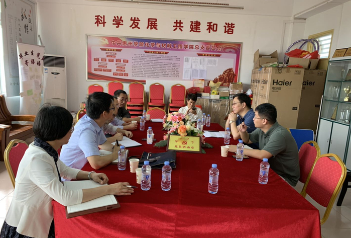 在化学与材料工程学院,梁建生与院领导班子成员、各专业负责人、正高职人员进行了座谈,详细了解该院人才引进、专业设置、学科团队建设、大亚湾惠州研究院建设和精细化工产业学院的筹备情况,就学院目前发展中存在的人才引进、实验室建设等问题提出了具体建议。