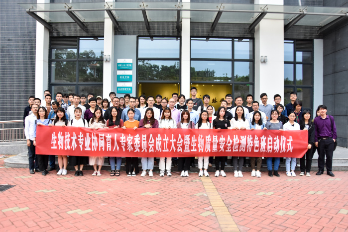 会上,教务处和学院领导为专家颁发聘书,全体参会人员合影留念。晚上,惠州出入境检验检疫局综合技术中心副主任朱事康高级工程师为生物质量安全检测特色班全体学员开展了《食品安全检测技术进展》的专题讲座。