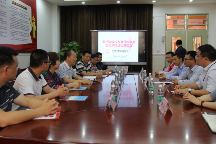 袁伟庆校长与叶永艺副校长介绍了惠南实验学校的办学情况。据悉,仲恺高新区惠南实验学校位于惠南高新科技产业园内,创办于2014年,并于2017年迁入新校区办学。该校致力服务惠南高新科技园产业工人子女教育,是惠州市第一所面向外来务工子弟办学的九年一贯制公办学校。学校在校生1350人,有85位教职工,其中惠州学院的校友占27人。