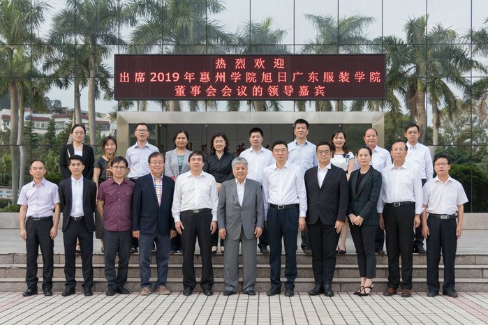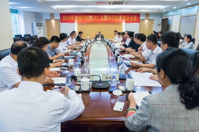 本网讯 4月25日下午,2019年惠州学院旭日广东服装学院董事会会议在我校行政楼202会议室召开。会议由香港旭日集团副董事长兼总经理杨勋主持,校党委书记、校长彭永宏,副校长刘国栋,香港制衣业训练局总干事杨国荣,真维斯国际(香港)有限公司董事兼副总经理刘伟文,东莞市天成动漫有限公司董事长袁永谦,广东伽懋智能织造股份有限公司董事长林植建,旭日广东服装学院党政负责人、教师代表及相关企业负责人参加会议。