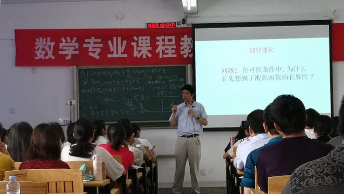 曹广福教授根据学生已经学过“可积条件”这节内容的实际情况,运用了“翻转课堂”教学模式,首先让学生针对这部分学过的内容提出自己的问题、质疑、疑惑等,而后组织学生共同探讨提出的问题,引导学生讨论老师提出的问题:为何要讨论函数的可积性?可积条件属于函数的内涵还是外延等问题,讨论现场气氛热烈,学生参与性强,学习收获大。