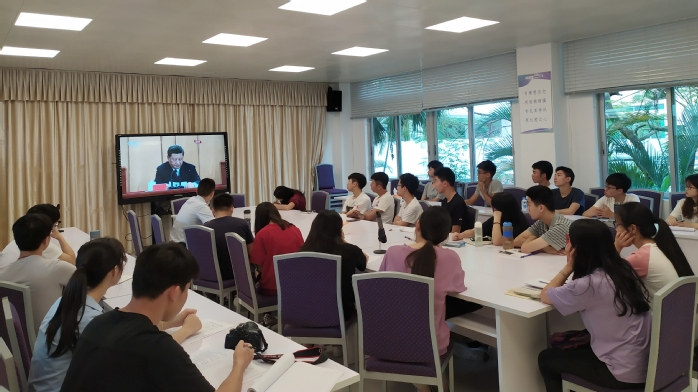 本网讯 4月30日上午10时30分,纪念五四运动100周年大会在北京人民大会堂隆重举行。中共中央总书记、国家主席、中央军委主席习近平出席大会并发表重要讲话。信息科学技术学院党总支组织党员、入党积极分子、团学骨干进行了实时收听收看,全体学院党政班子成员、系部主任参加了学校主会场的观看活动。