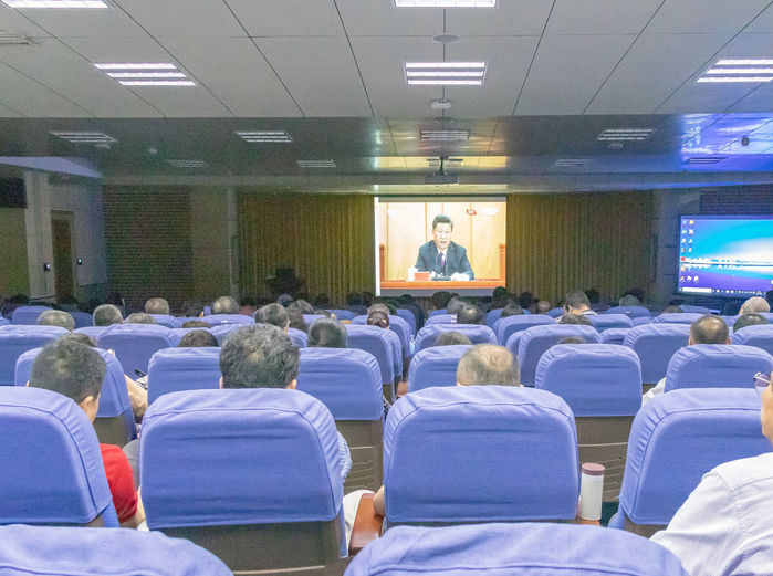 本网讯 4月30日上午,纪念五四运动100周年大会在北京人民大会堂举行。中共中央总书记、国家主席、中央军委主席习近平出席大会并发表重要讲话。我校在图书馆报告厅举行党委理论学习中心组专题(扩大)学习会,集中收听收看大会现场直播,全体校领导、校长助理、副科级以上干部、系(教研室)主任参加了学习。