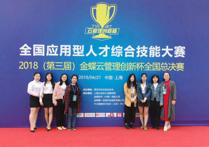 本网讯 近日,第三届“金蝶云管理创新杯”全国总决赛在上海立信会计金融学院举行。由我校经济管理学院6名学子组成的两支队伍在袁睿、钟顺东、赵勤、袁祥勇等四位老师的指导下,最终分别荣获二等奖和优秀奖。