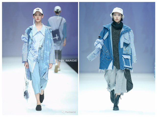本网讯 5月13日-19日,2019年尚坤塬·中国国际大学生时装周在751D·PARK北京时尚设计广场举行。作为该时装周的收官赛事,第24届中国时装设计“新人奖”评选如约举行。旭日广东服装学院2015级服装与服饰专业1班的何金姣同学以牛仔再造与条纹面料结合设计创作的作品《快时尚》获得“新人奖”优秀奖。