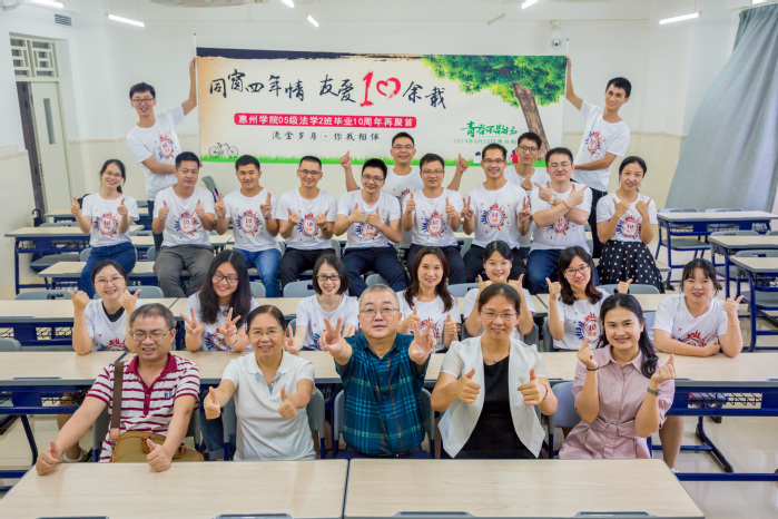 本网讯 5月25日下午,政法学院05级法学2班在教学实验大楼405课室举办了毕业十周年同学聚会,学院领导、老师代表与校友们参加了本次活动。