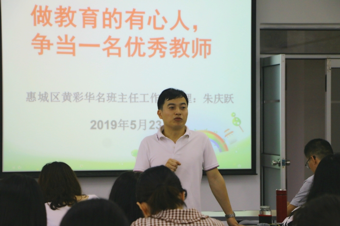 本网讯 5月23日下午,文学与传媒学院特邀惠州市南雁小学朱庆跃老师为16级汉语言文学专业的同学在旭日大楼402教室作《做教育的有心人,争当一名优秀的教师》讲座。本次活动由教务处主办、文学与传媒学院承办。讲座由文学与传媒学院刘建辉老师主持。
