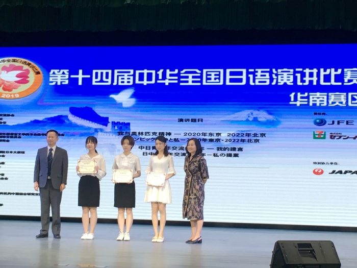 中华全国日语演讲比赛由中国教育国际交流协会、日本经济新闻社和日本华人教授会议主办,教育部高等学校外国语言文学类专业教学指导委员会日语专业教学指导分委员会和中国日语教学研究会协办,广东外语外贸大学承办,是全国最有影响力、最具权威的日语演讲比赛,被列为2019年中日青少年交流促进年活动之一,旨在增进中日两国之间的友谊、加深相互理解,提高我国大学生学习日语的热情,汇集了来自广东、福建、广西和海南4个省份、30所知名高校的30名优秀选手同台竞技。