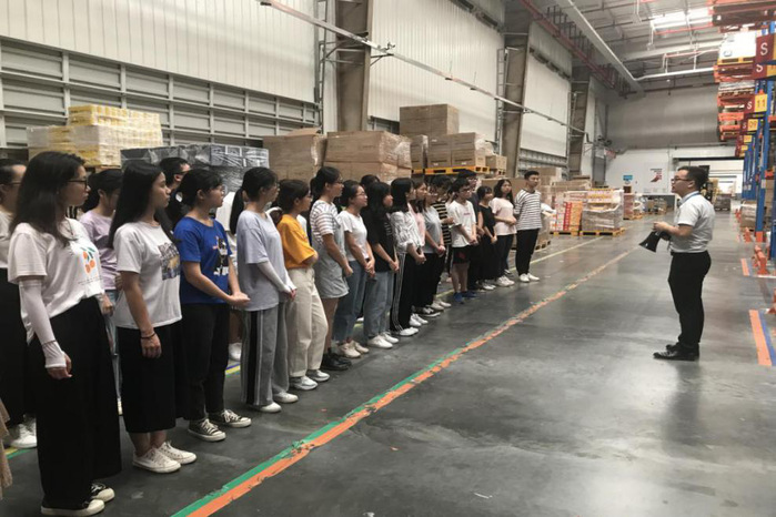 6月27日,王少君、龚宇晴老师带领17级物流管理专业全体同学前往苏宁物流实践教学基地参观学习。参观中,苏宁物流经理首先向同学们介绍了高层货架、小二层货架、原地存储区以及隔板货架等不同货架,并详细阐述了分拣货物流程,部分同学亲自体验了分拣过程。同时,他详细介绍了入货区、包装区、出货区,使同学们对仓库有了更进一步的了解,并对同学们提出的疑问进行了解答。