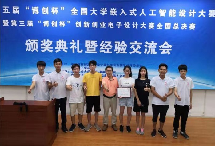 本网讯 7月12日-14日,第十五届“博创杯”全国大学生嵌入式人工智能设计大赛暨第三届“博创杯”创新创业电子设计大赛全国总决赛及颁奖典礼在北京工业大学举行。经过激烈竞争,我校信息科学技术学院派出的两支队伍分别获得一等奖和二等奖。