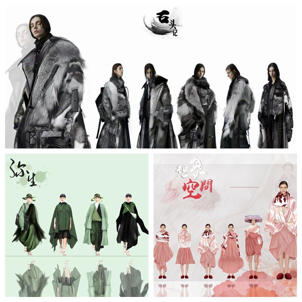 大赛参赛作品主题多样,根据参赛企业、学生和设计师围绕不同主题风格进行营销包装、系列化编排和强化风格命名,最终形成“诗意田园”“先锋职场”“炫酷运动”“千载古风”“尊享独我”等五种皮革皮草表述情境的创意风格。在此基础之上,选手们对被挑选出的冬装组合搭配其他服装与配饰,进行主题风格的二次演绎,从而呈现更加显著、差异化的设计定位。