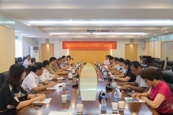 本网讯 8月22日,“不忘初心下农村 牢记使命书田间”惠州学院2019年农村科技特派员“暑期大下乡”活动启动仪式在学校行政楼202会议室举行。我校副校长许玩宏、惠州市科学技术局副局长高业广出席活动并讲话。我校生命科学学院院长陈兆贵介绍农村科技特派服务团队组建情况。惠州市科技局刘福陀副调研员、肖明勇副主任科员、惠州市农业农村局罗国华科长以及学校科研处、生命科学学院相关领导和教师参加了仪式。