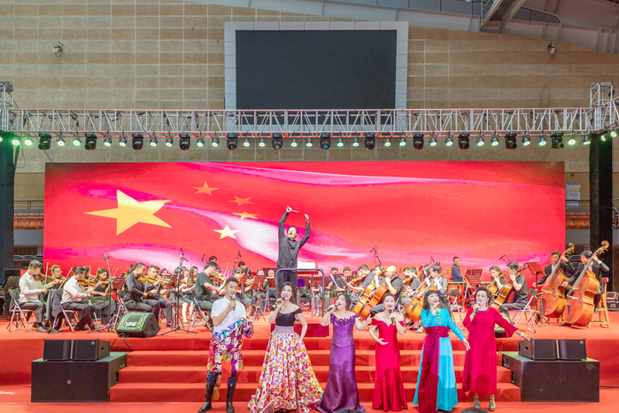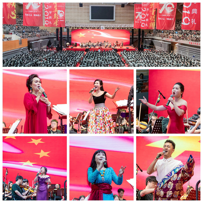 本网讯 加强大学美育教育,提升大学生审美水平,是高校思想政治教育的重要内容。9月11日下午,在新生入学教育系列报告期间,我校在金山湖体育馆举办了一场“爱国歌曲进校园”活动暨新生音乐会。学校交响乐团将一首首爱国歌曲精彩演绎,将爱国情、强国志、报国行融入到新生入学教育当中,激发全场师生的爱国热情,推进学校精神文明建设,共同迎接新中国成立70周年!