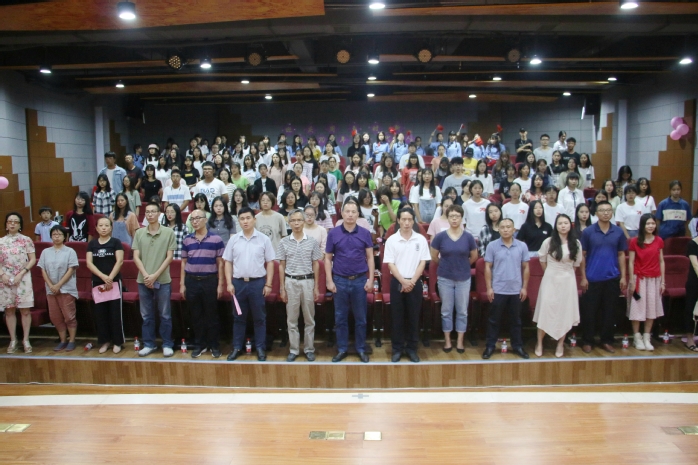 晚会最后,师生全体起立,共同高歌《歌唱祖国》,以嘹亮的歌声祝福伟大的祖国更加繁荣富强。