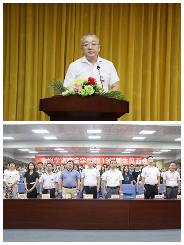 会上,副院长周巍代表学院向全体新生介绍了政法学院的历史沿革、教学条件、专业特色、学院近年来取得的成绩以及人才培养方案的措施及成效。他希望大家充分利用和把握好学校及院系的各项资源和机会,在大学生涯里不断充实和提升自己。副院长张小平介绍了相关学科竞赛情况,并鼓励同学们积极参与学院师范生技能大赛、社工实务大赛及法学生的模拟法庭等活动。他强调,未来的学科竞赛将逐步面向全校化,实现院级和校级的资源互补,以达多方协同人才培养目标。副院长郭平兴对学院实习见习情况进行了介绍,并希望新生应多与老师交流,建立良好的人际关系,努力拓宽自己的视野,不断提升自我的实习、见习、研习等综合实践能力。2009届法学1班陈仲生优秀校友分享了自己在专业学习、各项考试、社团活动及实习工作中的感悟,希望师弟师妹们可以在大学校园里度过美好的学习生活,遇见更好的自己。新生代表2019级历史2班的邓雨萱同学表示,一进入政法学院就感受到无尽的温暖,更加坚定了自己的选择,期待开启一段崭新充实的大学生活。