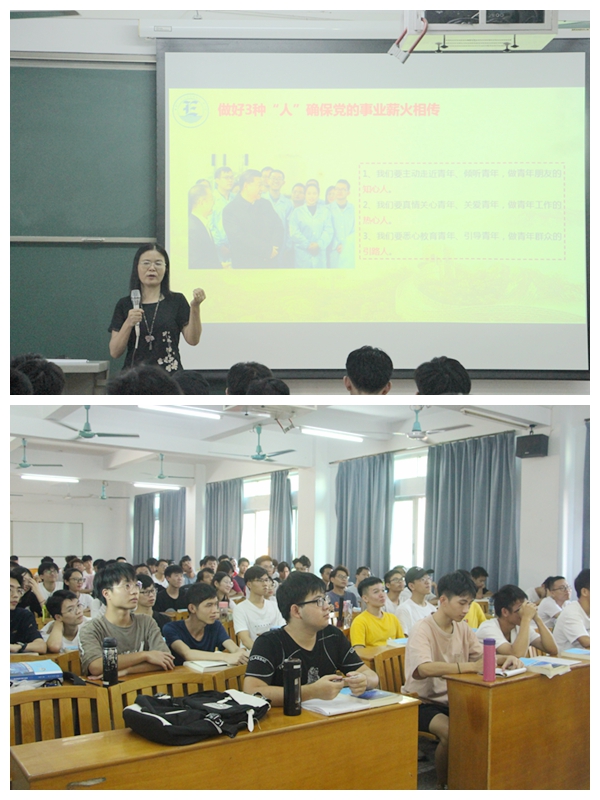电子信息与电气工程学院党总支书记郑良才于9月26日晚在学院会议室为2018级、2019级电子相关专业学生代表授课“思政第一课”,主题为“学党史 种党恩 听党话 跟党走”。