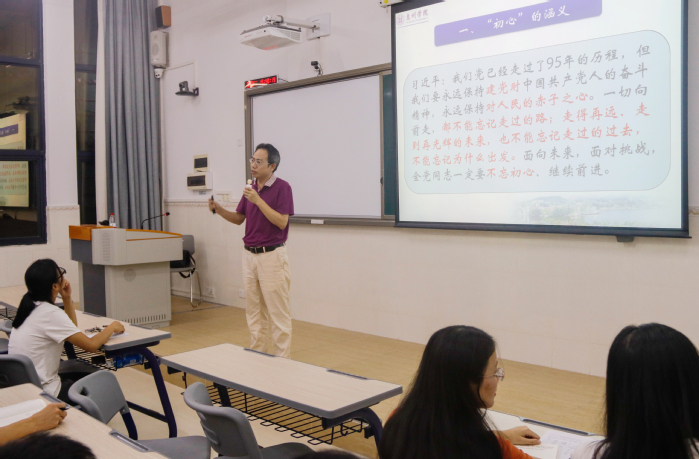 本网讯 为扎实推进“不忘初心、牢记使命”主题教育,提高学生党员“先锋班”学员的政治理论水平,10月15日晚,学生党员“先锋班”在教学实验大楼201教室举行“中国共产党‘初心’的脉络与传承研究”专题讲座。我校马克思主义学院黄金魁副教授应邀担任主讲,学生党员“先锋班”全体学员聆听了讲座。