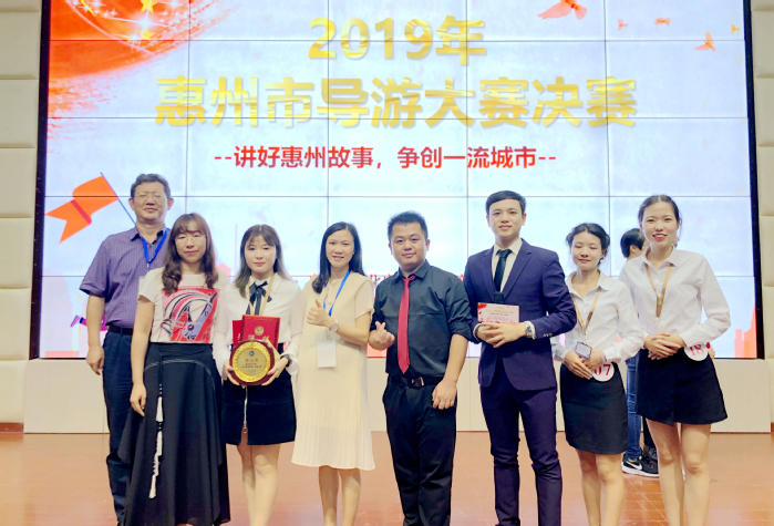 本网讯 10月16日,惠州市2019年“讲好惠州故事”导游大赛决赛在惠州城市职业学院举行。经过激烈的角逐,大赛共评选出10名金牌导游和10名优秀导游。其中,我校地理与旅游学院旅游管理专业2015级4班优秀毕业生黄君婷、旅游管理专业2016级1班的张泽丹分别以第二名和第九名的成绩获得“惠州金牌导游”称号;旅游管理专业2016级1班的王春梅以第十一名的成绩获得“惠州市优秀导游”称号。以上三名获奖同学同时被聘为惠州市政务导游。