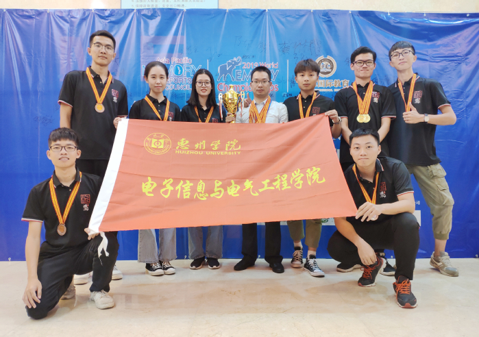据悉,在2018年的第27届的世界脑力锦标全球总决赛上,我校电子信息与电气工程学院教师曾德灿随中国代表队一举夺得了世锦赛的团体总冠军,而曾老师个人也获得了“世界记忆大师”的终身荣誉称号。返校后,曾老师在学院领导班子的支持下,不断在在校学生和惠院毕业的校友中发掘人才,最终成功组建了由朱洁思、罗景华、柳剑锋、张元涛、杨智凯、张海杰、戴泽权、薛依玲等8位2018级学生与叶常绿1位2013级校友组成的“‘惠忆’之师”,全力备战和冲击第28届世界脑力锦标赛。
