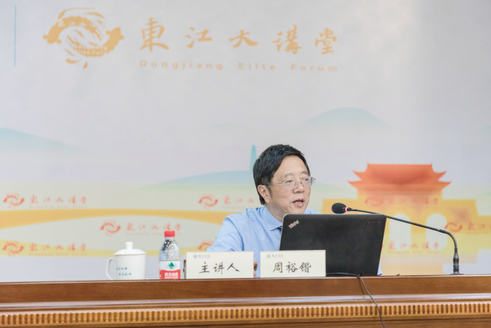 本网讯 10月28日上午,四川大学中国俗文化研究所研究员、文学与新闻学院二级教授、博士生导师、苏轼学会会长周裕锴教授应邀做客我校东江大讲堂,在鹅城会议厅做了一场题为“苏东坡人生智慧对当代社会的启示”的学术讲座。讲座由校党委副书记、纪委书记罗川山主持。