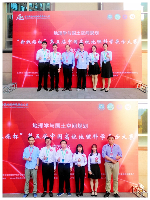 本网讯 10月18日-20日,“新蚁族杯”第五届中国高校地理科学展示大赛(南方赛区)”在湖南衡阳举行。我校地理与旅游学院派出2016级、2017级共9名同学参赛,并在戴学军、王丰年、尹辉和吴鹏豹四位老师的指导下分别获得人文地理组南方赛区三等奖和自然地理组南方赛区三等奖。