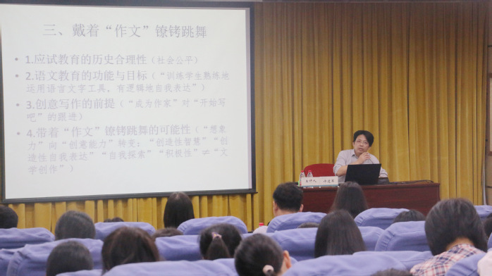 许道军老师有关中学作文教学改革的讲座观点独特、富有理论高度和实践指向,赢得了在场师生和一线教师的阵阵掌声。