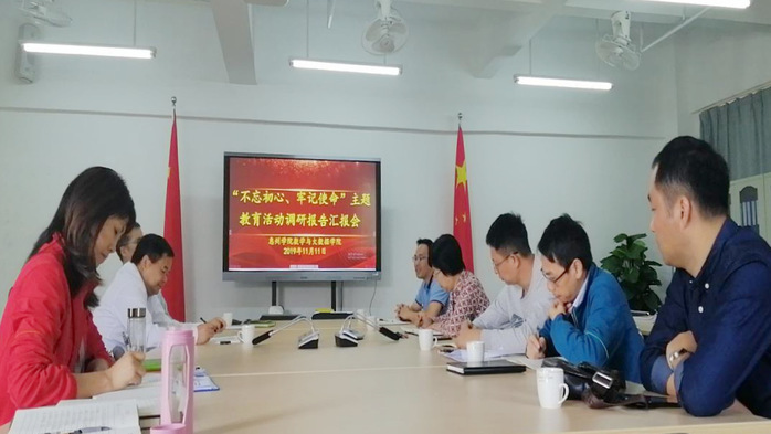 本网讯 11月11日上午,数学与大数据学院在旭日大楼328会议室召开“不忘初心、牢记使命”主题教育调研报告汇报会,学校主题教育第二指导组组长罗恢远、学院领导班子、总支各委员参加会议。会议由学院党总支书记金岩主持。