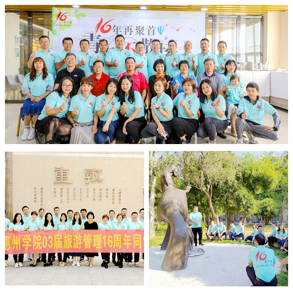 团聚会上,许玩宏副校长向校友们介绍了学校近几年的发展概况,对校友们返校相聚表示热烈的欢迎!地理与旅游学院负责人介绍了该院学科专业建设、师资队伍建设、社会服务等方面的情况,希望校友们对学院发展多提宝贵建议。常回家看看,共同推动学院更好发展。2003届班主任张翠苹老师与校友们重温了在校期间的美好时光,并向校友们介绍了新近投入使用的“旅游管理教学示范中心”的相关情况。校友代表余志深同学深情地回顾了在校学习的温暖场景,表达了对恩师教诲和母校培养的感恩之情,号召校友们不忘“惠院人”“旅游人”的身份,一起为母校及旅管专业建设和发展尽献绵薄之力!