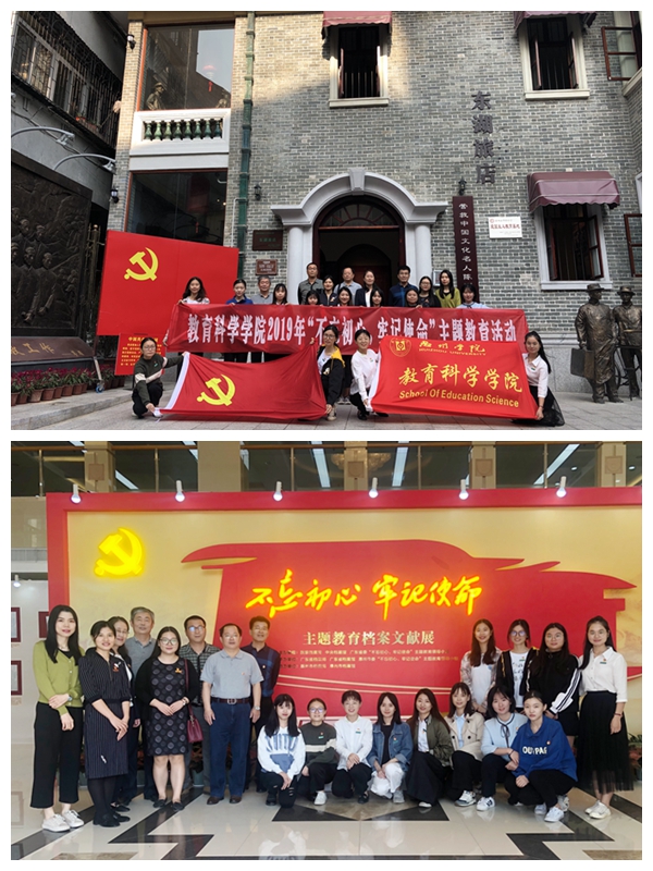 本网讯 为加强革命传统教育,增强全体党员责任意识和爱国情怀,11月14日,教育科学学院组织全体党员前往营救中国文化名人陈列馆(惠州东湖旅店旧址)和惠州市档案馆进行了“不忘初心、牢记使命”主题教育参观学习活动。